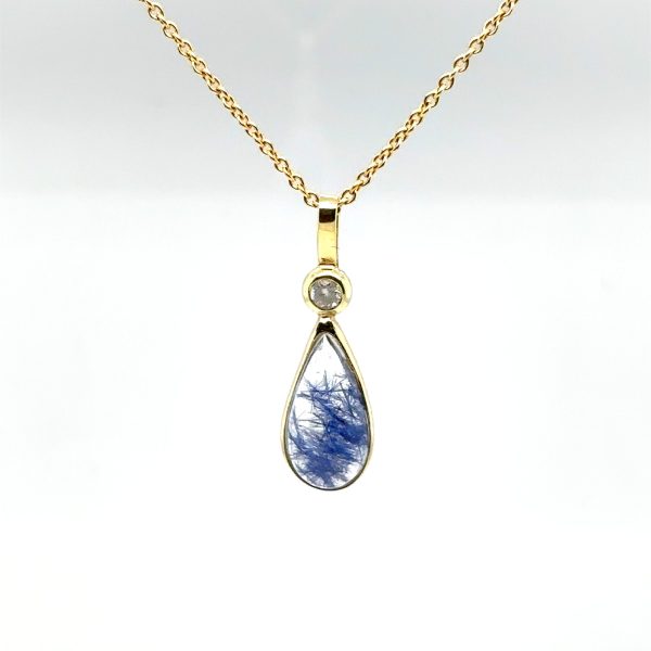 14 karaat geel gouden Dumortierite Quarts hanger met 0.15 ct diamant