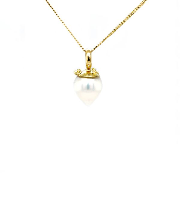 14 karaat geelgouden hanger met druppelvormige zoetwaterparel Collier los verkrijgbaar