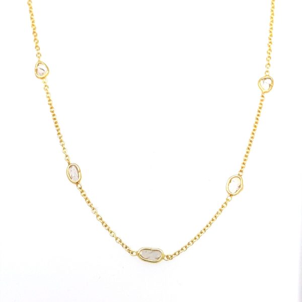 14 karaat geelgouden anker collier met bruine diamant plakjes