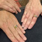 Deze twee ringen zijn gemaakt voor zussen en vervaardigd uit het goud van hun moeder. Een prachtig eerbetoon aan haar blijvende aanwezigheid in hun leven.