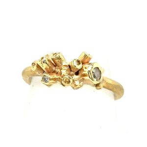 14 karaat geelgouden ring geïnspireerd op koraal met een roos geslepen diamant