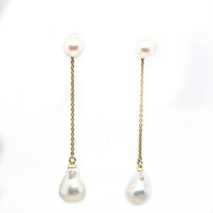 14 karaat rosegouden oorhangers met druppelvormige onyx.