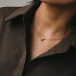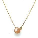 14 karaat geelgouden collier met een ronde Moonface maansteen. In de maansteen is een gezichtje gegraveerd.