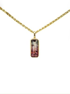 14 karaat geelgouden collier met Tourmalijn en Welo Opaal