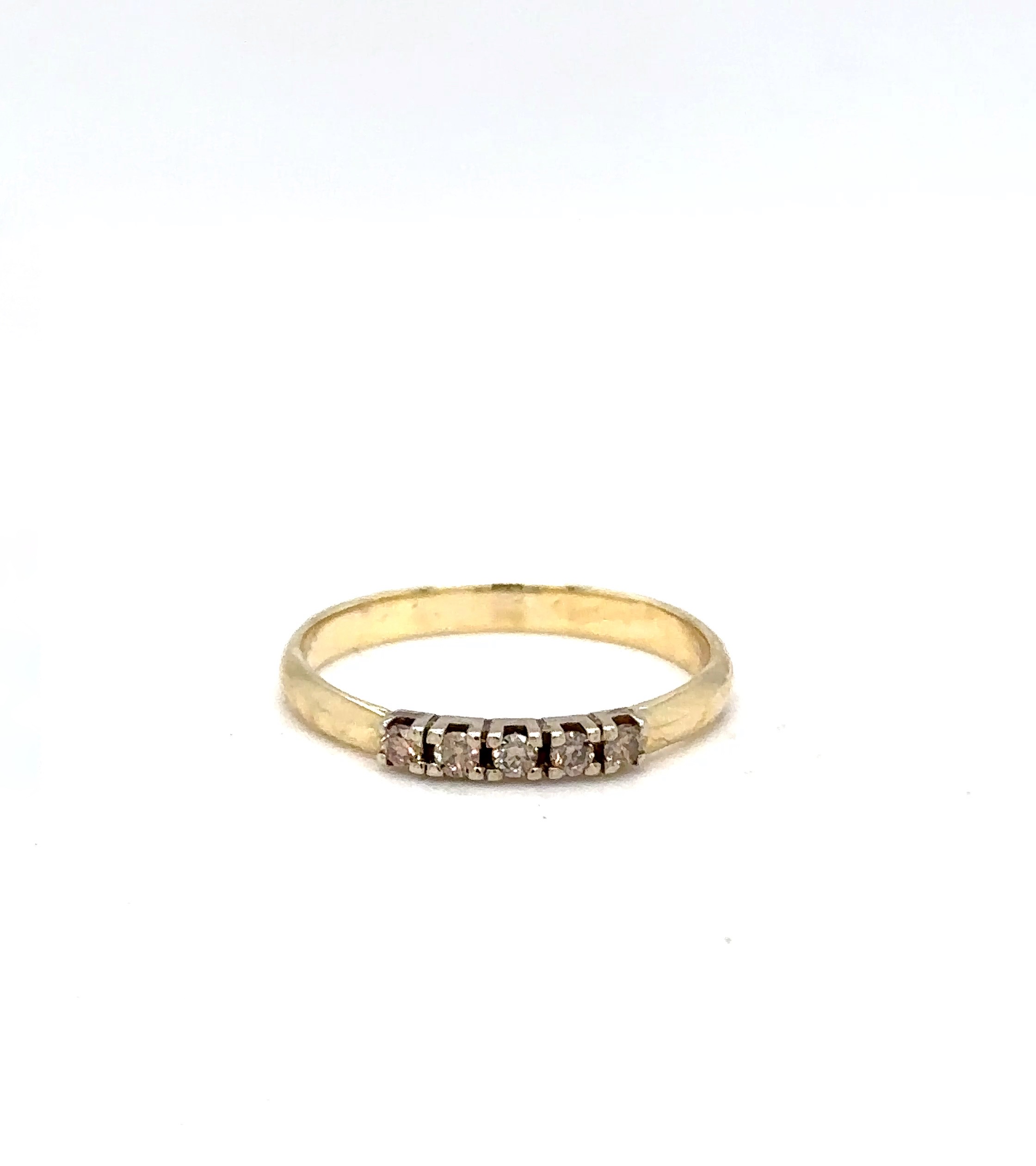 14 karaats bicolor rijring met 5 bruine diamanten 0.10ct