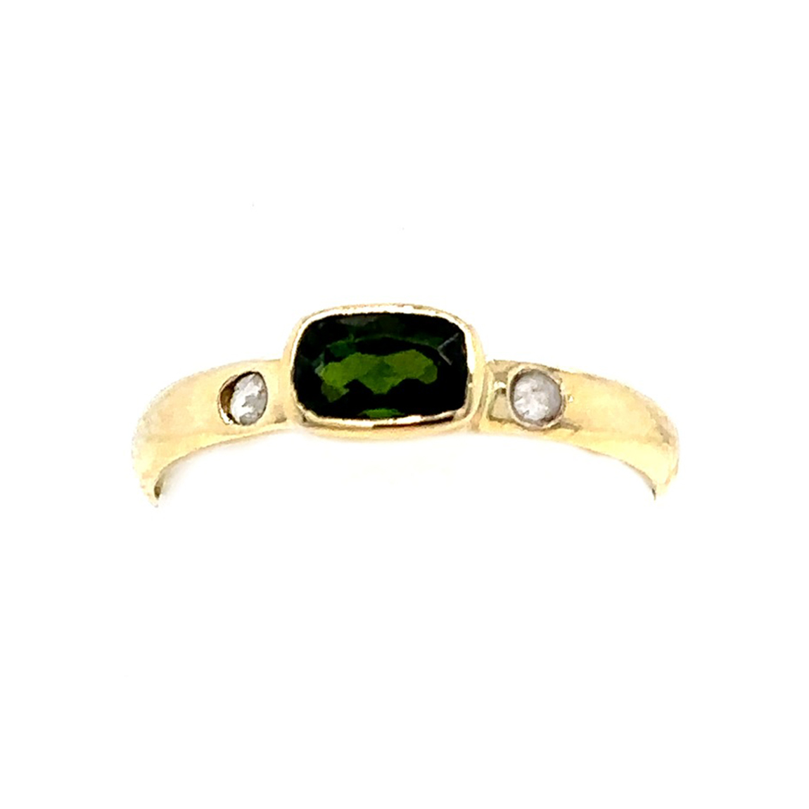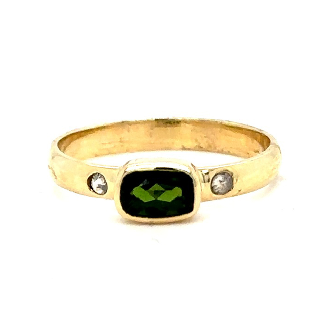 14 karaat geelgouden ring met Chroom-dioopsiet en 2x roos geslepen diamant