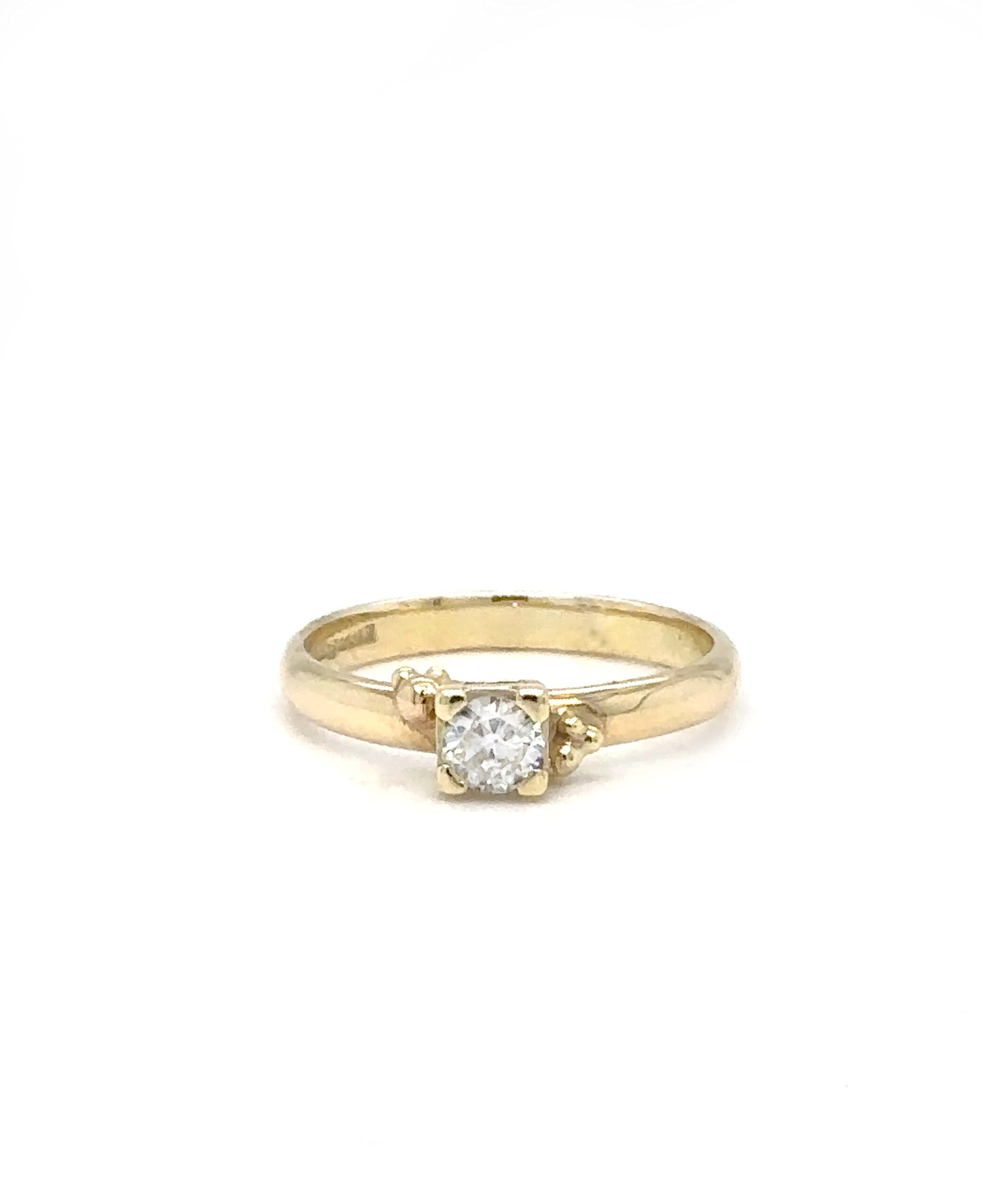Deze ring is gemaakt van 14krt geelgoud en heeft een diamant van 0.28 ct. De ringmaat is maat 17,5.