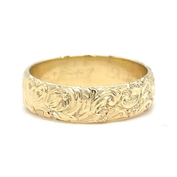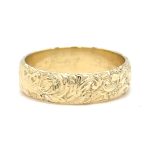 Geelgouden ring organische beeltenis handgravure Prijs op aanvraag