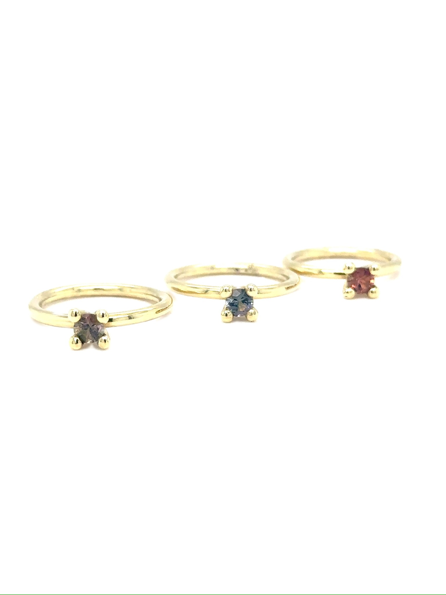 De stenen vangen het licht elk op hun eigen wijze.