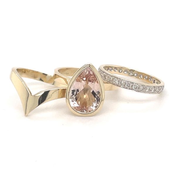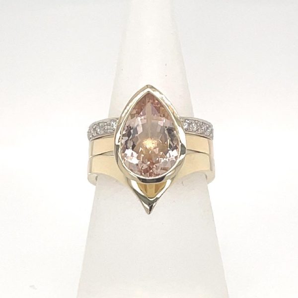 Prachtige set van 3 ringen vermaakt van oud goud met diamanten en een morganiet p.o.a.