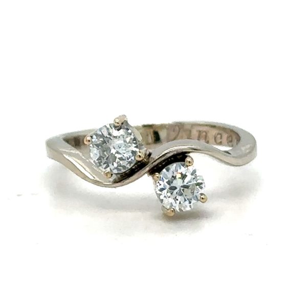 Deze elegante witgouden ring is vervaardigd uit 14 karaats goud, met schitterende diamanten die hergebruikt zijn uit de oorbellen van de klant. Door het opnieuw verwerken van deze stenen krijgt de ring niet alleen een tijdloos design, maar ook een persoonlijke en emotionele waarde. Perfect om een nieuw hoofdstuk in liefde mee te bezegelen.